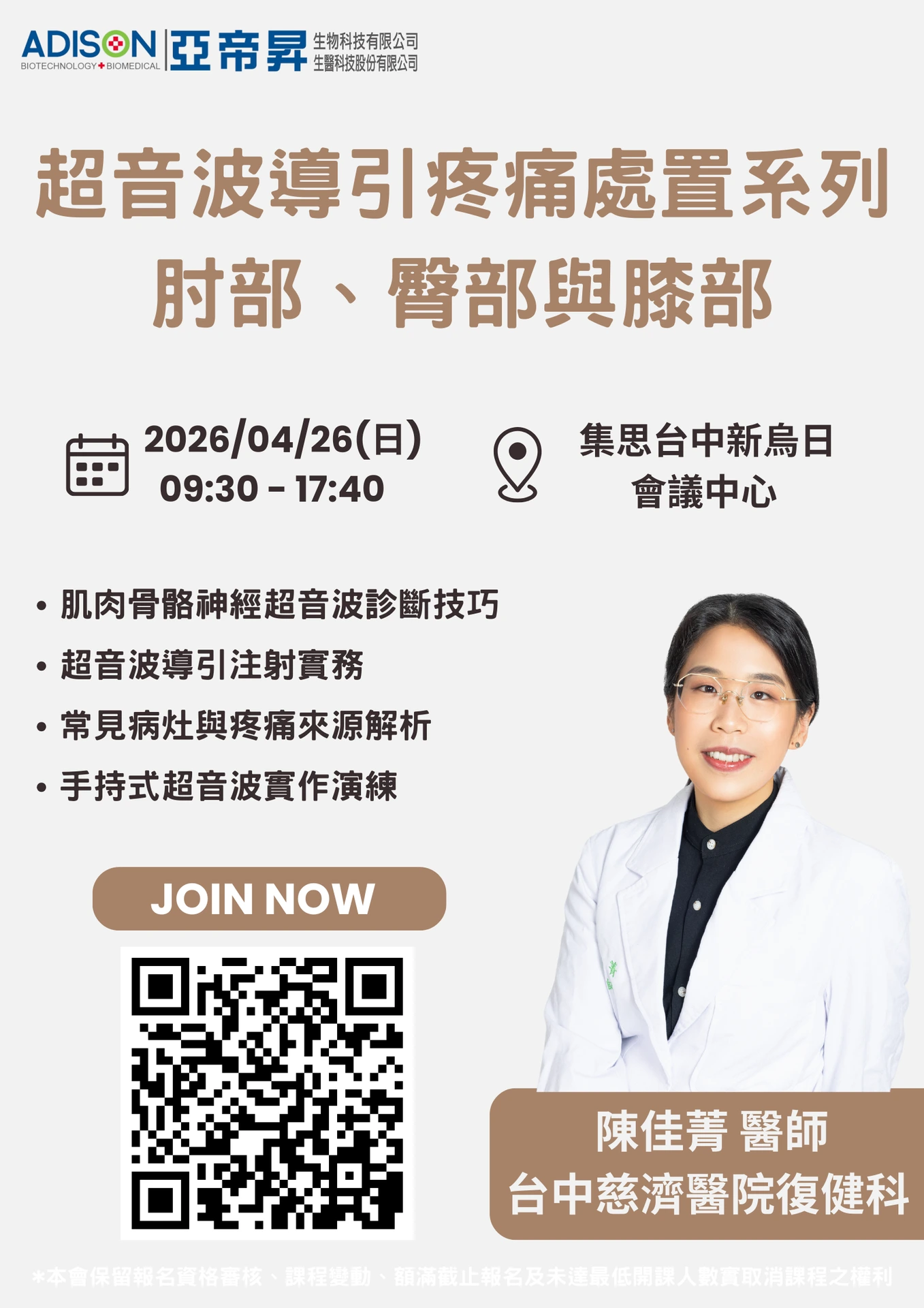 4/26 超音波工作坊-導引疼痛處置系列-肘部、臀部與膝部